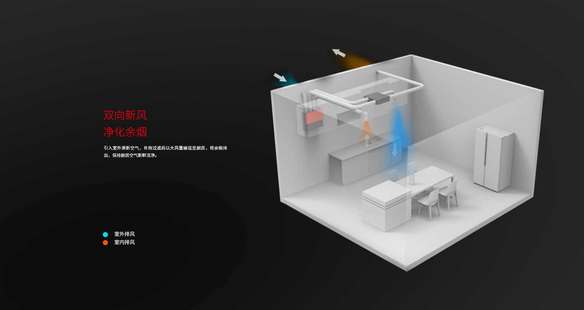 我們待在廚房的時間越來越長,對廚房環境的要求自然也越來越高。針對中國廚房油煙、異味殘留、高溫等痛點,庫靈圖首創廚房新風系統。打造清新、舒適的廚房環境,讓我們更樂于在廚房逗留,享受品質廚房生活。