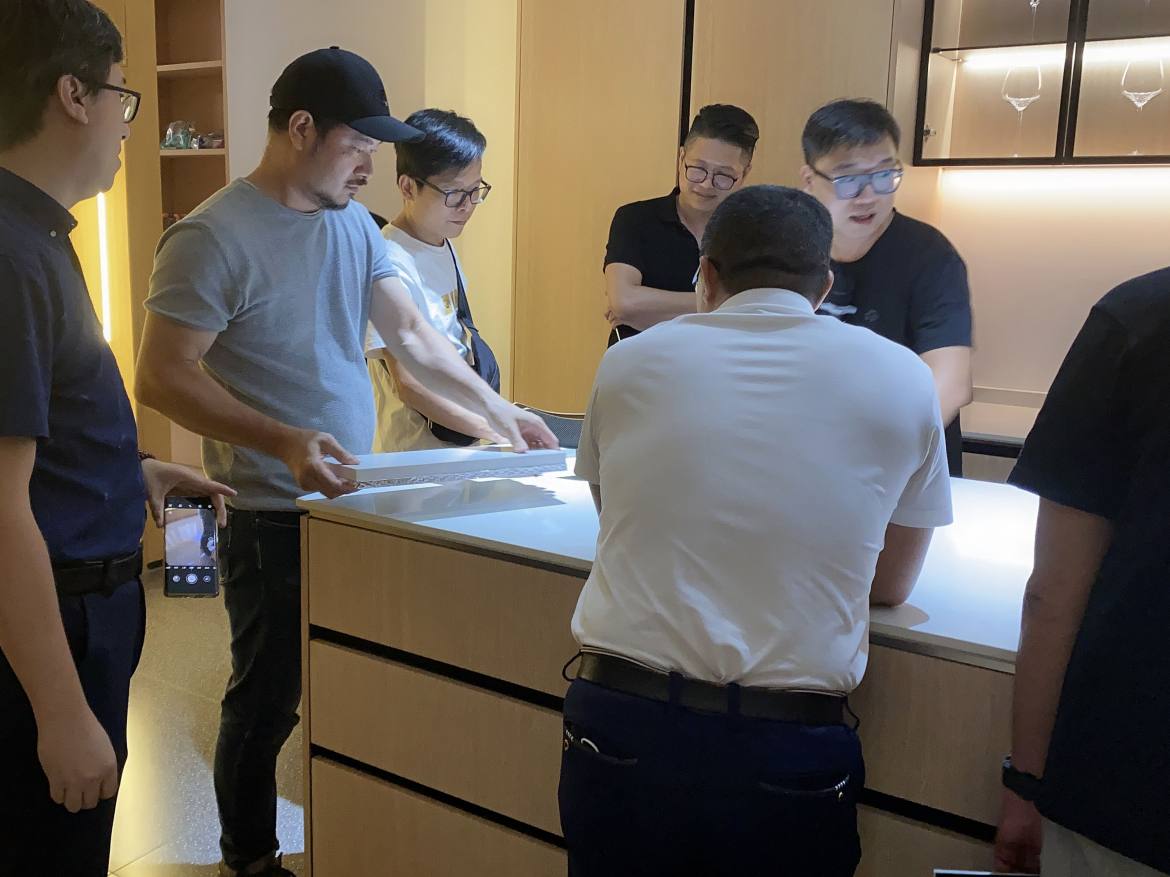 在接下來的活動中,設(shè)計師朋友們跟隨著庫靈圖展廳參觀的動線,逐步了解了各類不銹鋼廚柜、陽臺柜等產(chǎn)品和工藝細(xì)節(jié)。R角一體壓模成型、蜂窩鋁+環(huán)保發(fā)泡復(fù)合填充等專屬于庫靈圖的獨家工藝技術(shù),以及各類人性化設(shè)計細(xì)節(jié)和時尚外觀,讓設(shè)計師們倍感興趣,好評不斷。